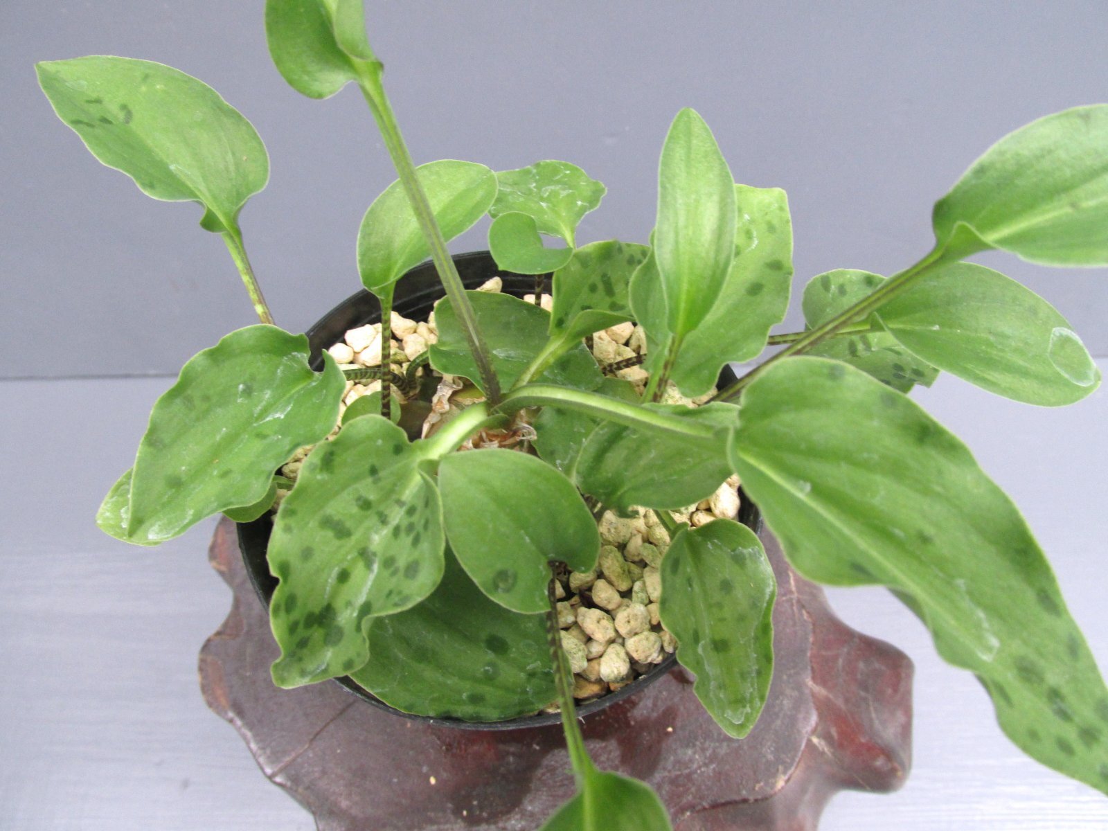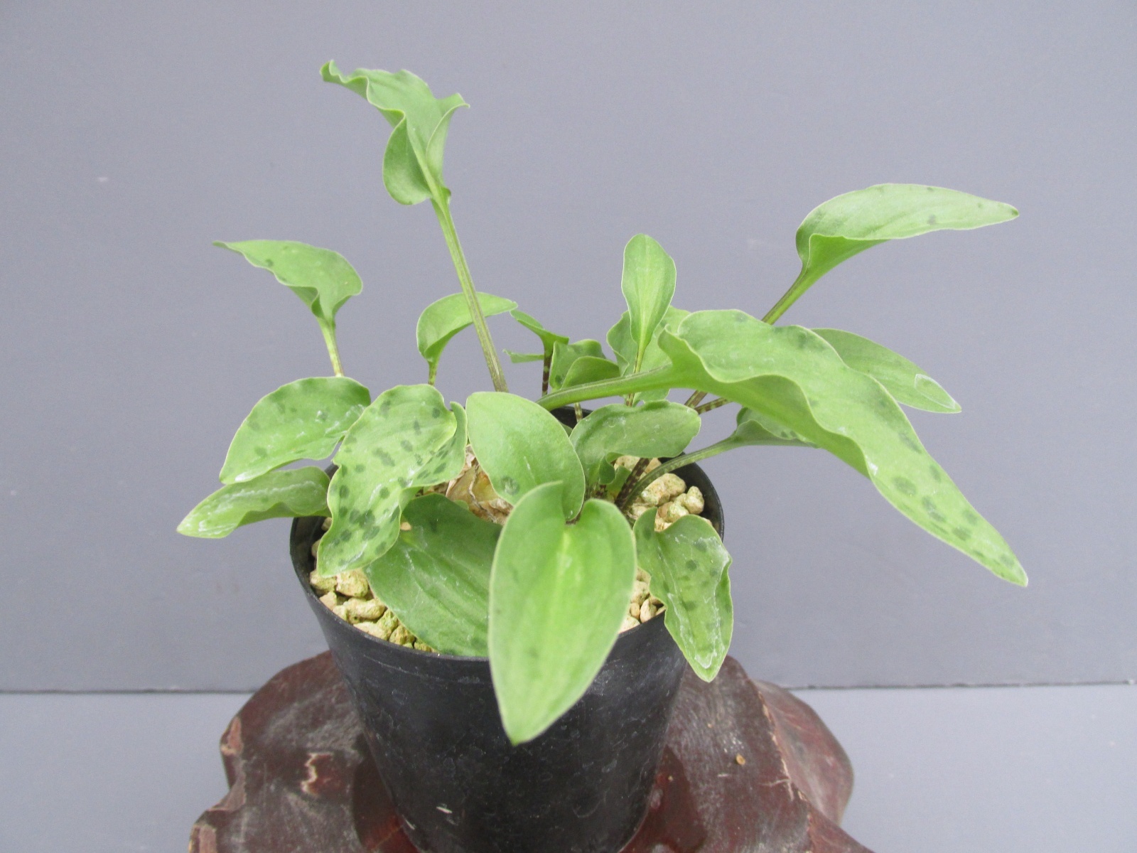Drimiopsis maculata 南アフリカ原産 キジカクシ科。ウズラ葉が特徴です。球根植物ですので乾かし気味に栽培しますが冬場も乾かしすぎない方が良いです。